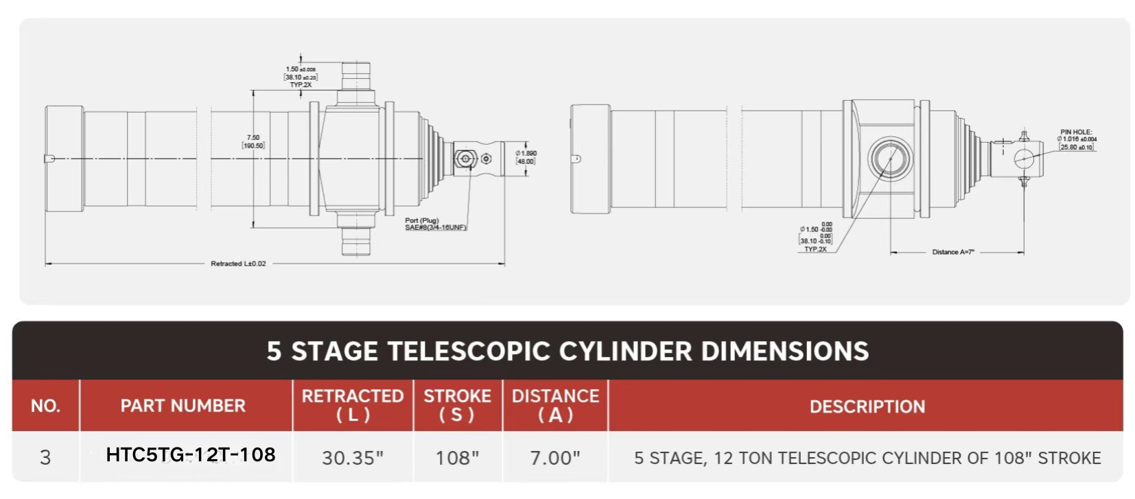 "HTC5TG-12T-108", 5stupňový, 12t 108" zdvihový teleskopický válec