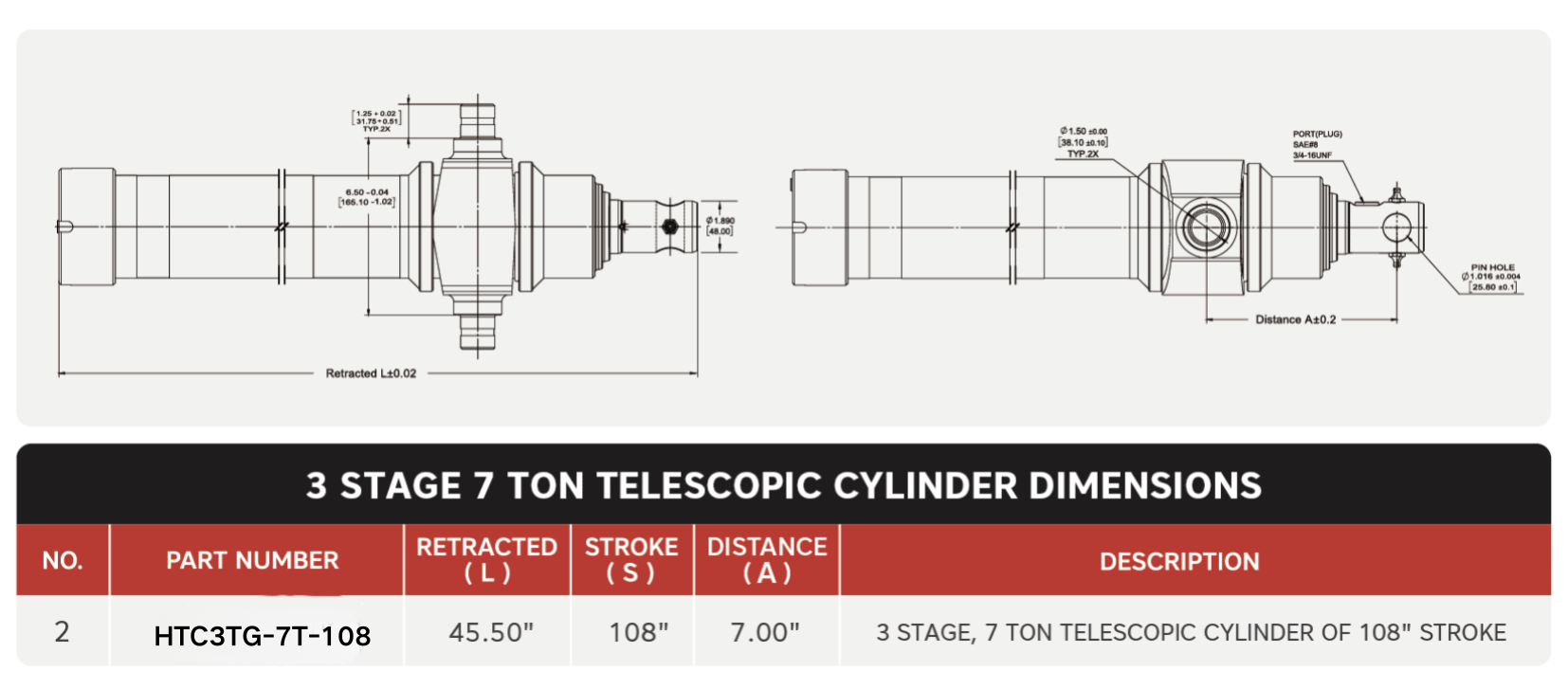 "HTC3TG-7T-108", 3stupňové, 7t 108" zdvihové teleskopické válce